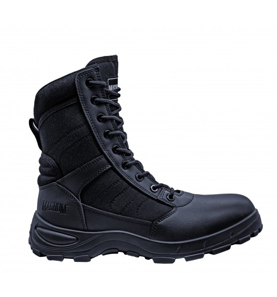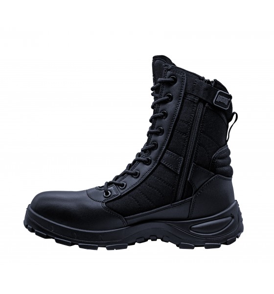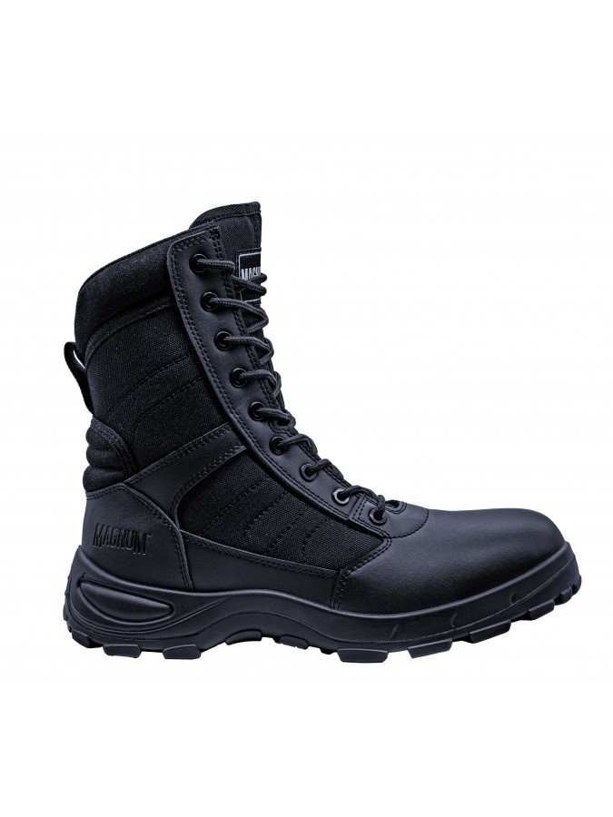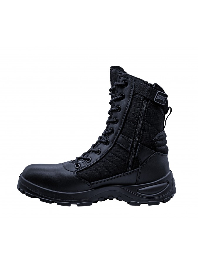 Les Magnum Centurion PLus 8.0 SZ sont des rangers professionnelles conçues pour les agents de sécurité, force de l'ordre et intervention. Elles offrent un excellent compromis entre confort, légèreté et résistance grâce à une tige en cuir respirant et nylon anti-abrasion. La fermeture zip latéral YKK permet un chaussage rapide tout en conservant un maintien optimal grâce au laçage classique.