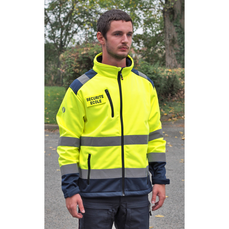 Veste haute visibilité softshell. Matière extérieure : 100% polyester, avec membrane TPU, 370 g/m². Doublure : polyester polaire. 3 poches extérieures et 1 poche intérieure. Fermeture à glissière. Taille avec cordon de serrage. Poignets avec bandes auto-agrippantes. Bandes rétroréfléchissantes.
