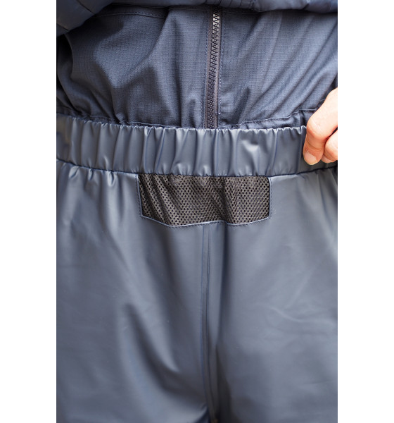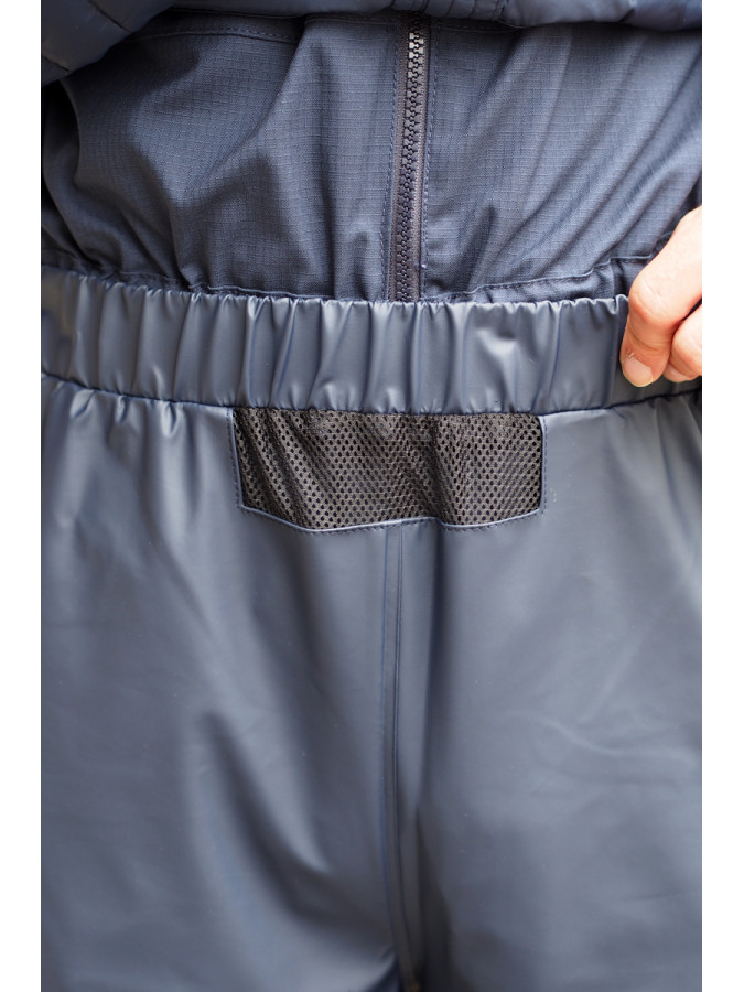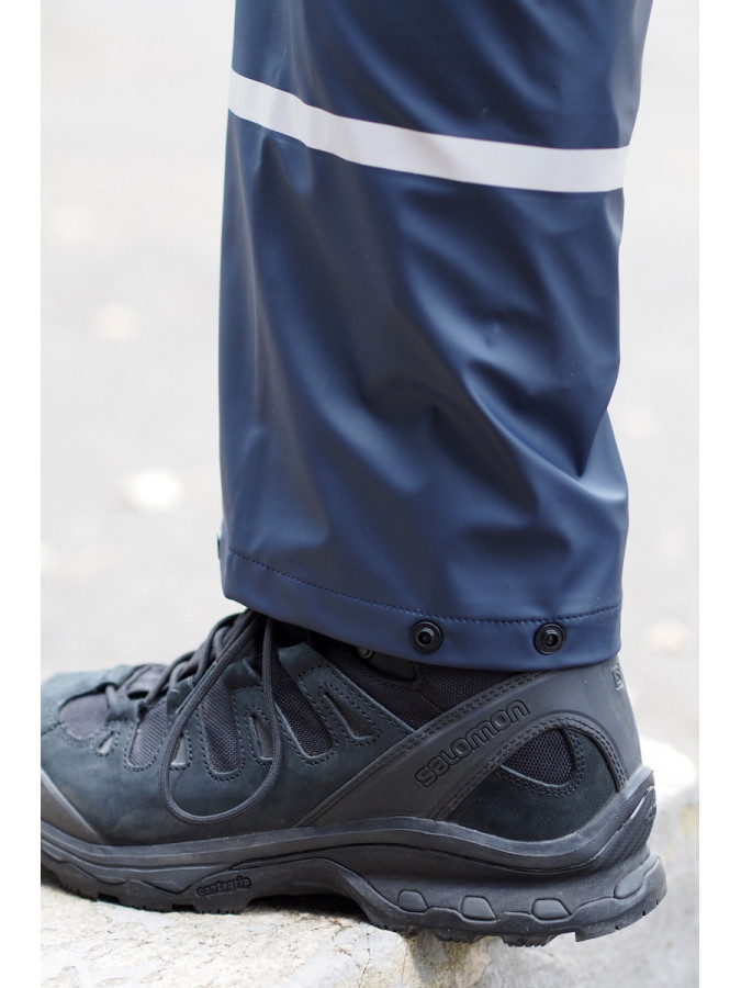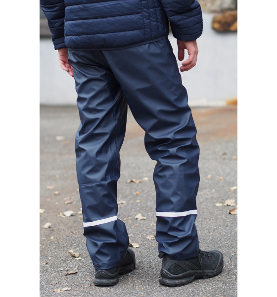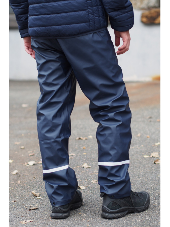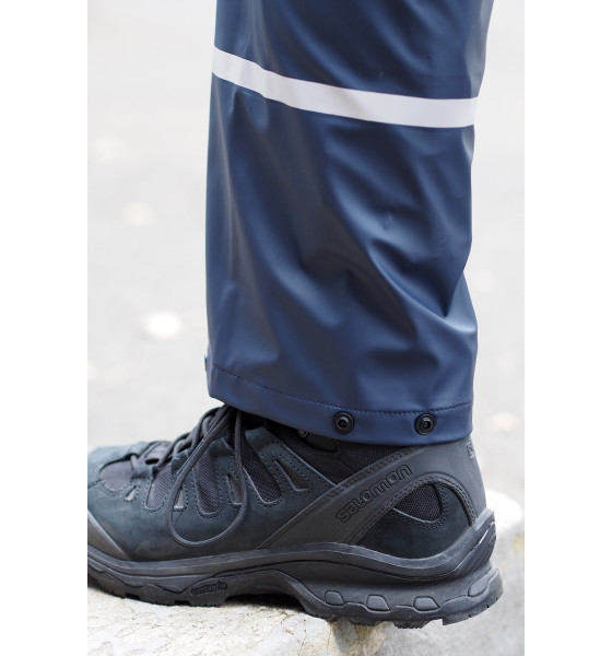 100% polyuréthane ( extérieur) / 100% polyester recyclé ( dos). Ce pantalon imperméable conçu avec des bandes réfléchissantes sur les jambes et des coutures soudées, offre une protection optimale contre la pluie. Il est respirant et respectueux de l'environnement avec une taille élastiquée et des chevilles à boutons-pression pour un ajustement optimal.