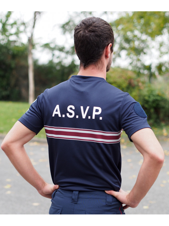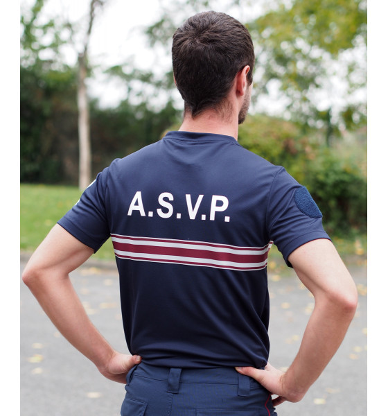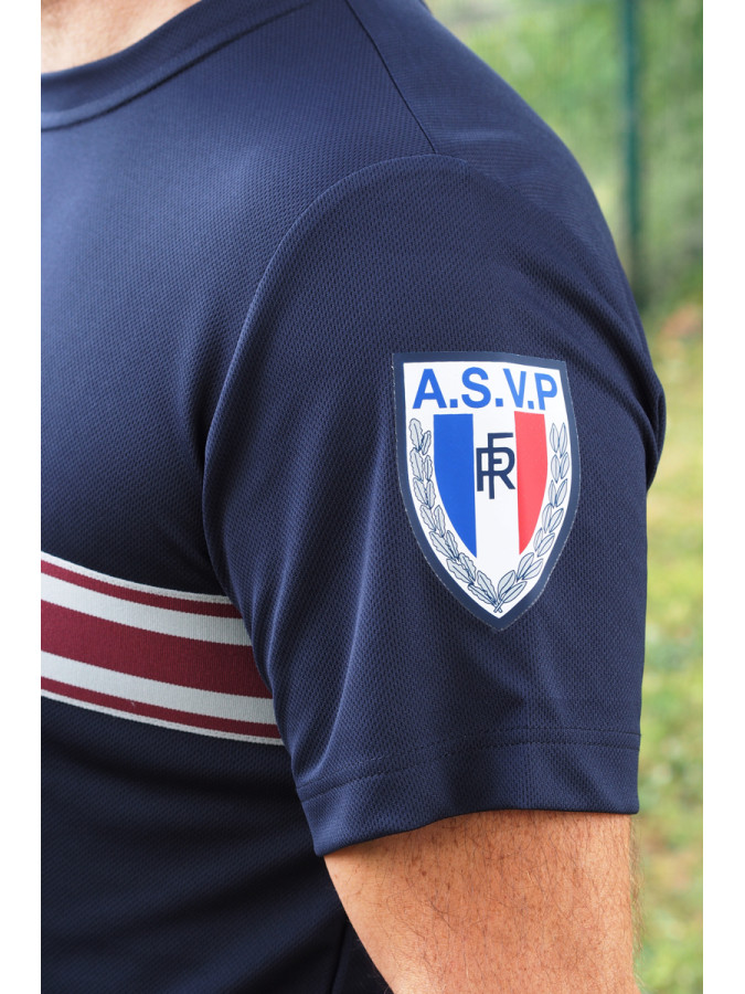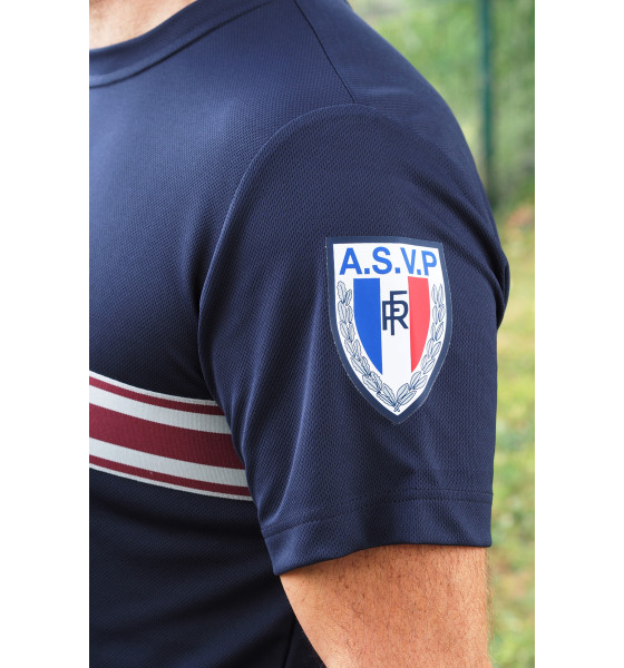 Velcro rond diamètre 80mm sur la manche, Ecusson RF ASVP quadri en transfert sur la manche. Biais de propreté au col.