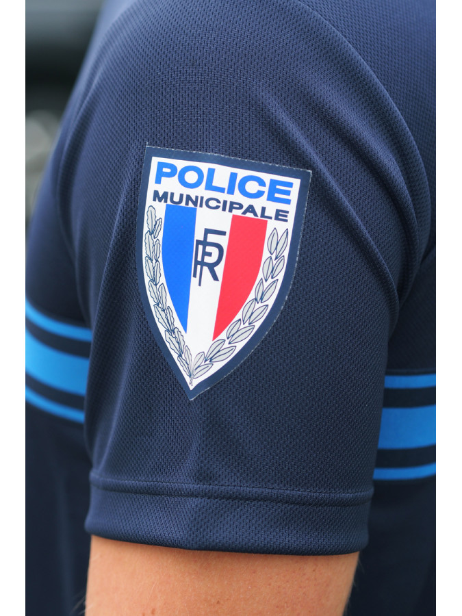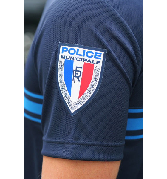 Velcro rond diamètre 80mm sur la manche, velcro grade 5x5 sur la poitrine. Ecusson RF PM quadri en transfert sur la manche. Biais de propreté au col.