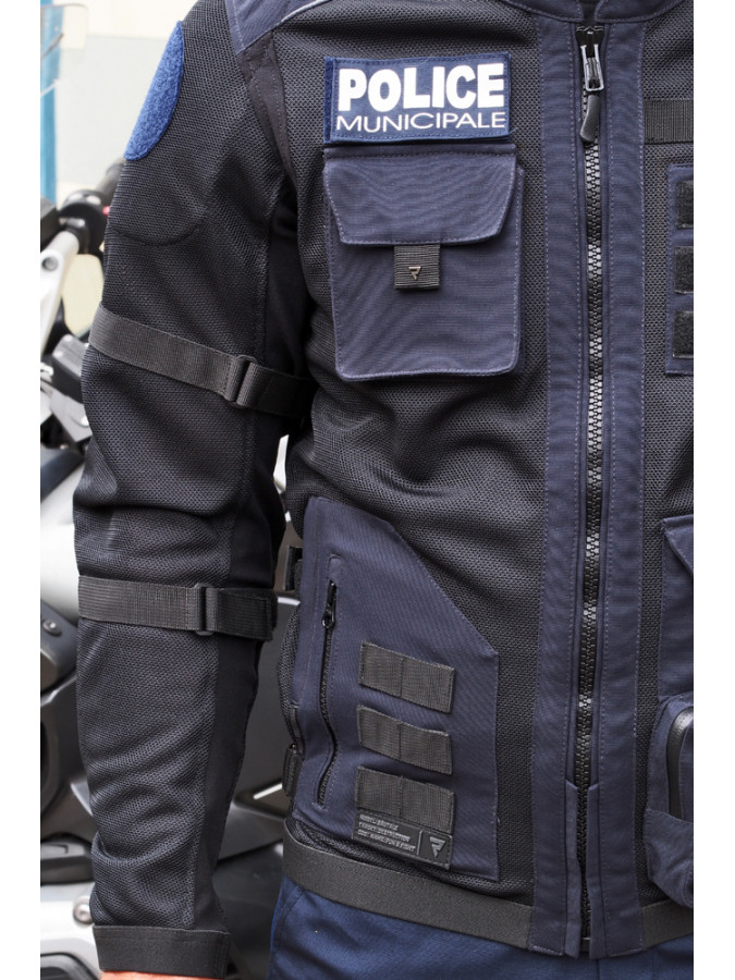 6 poches externes. La finition délicate des poignets et du col augmente le confort de l'utilisation. Les éléments réfléchissants reflective augmentent la visibilité du motard. Les inserts étirables en matériaux souples améliorent le confort et assurent la liberté des mouvements pendant la conduite. Le reglage au niveau de la taille garantit un ajustement optimal de la veste. Identifiant Police Municipale devant et dos, velcro aux épaules.